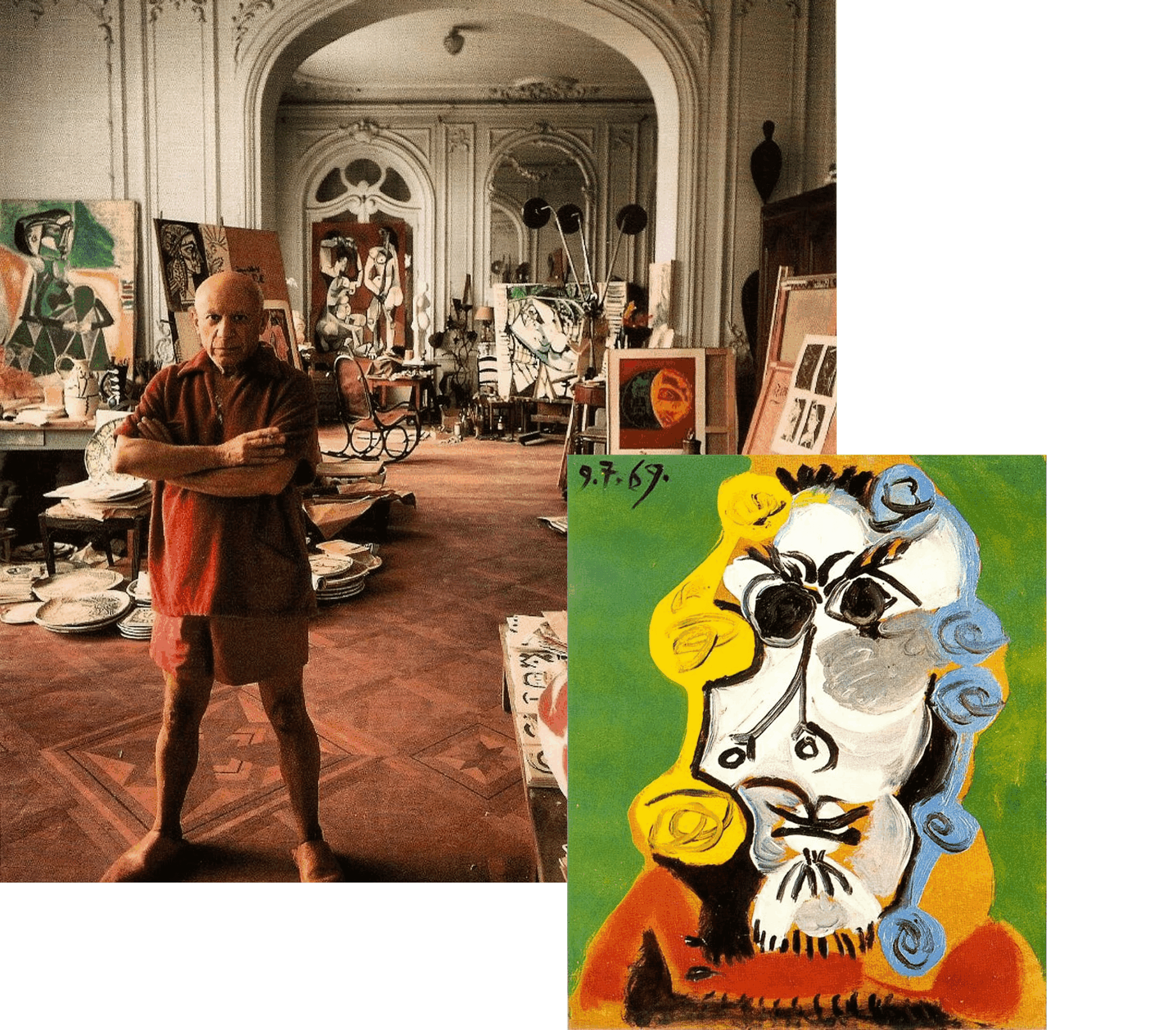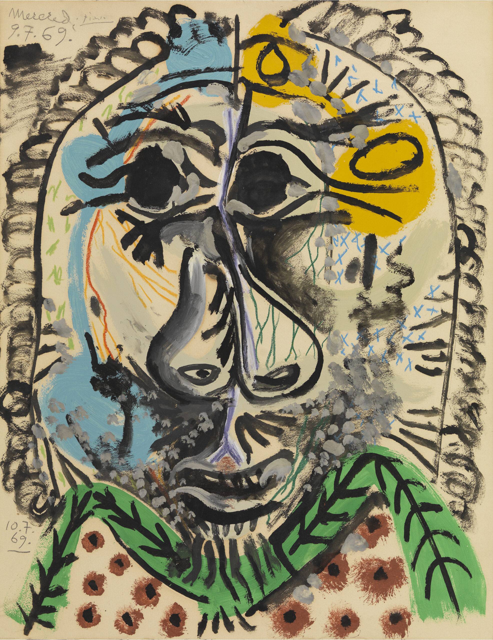 In 1969, Picasso was at the height of his creative powers, producing a prolific body of work. During this period, he became increasingly focused on male portraiture, exploring close-up compositions, vivid colors, and expressive details that captured the essence of his subjects. He experimented freely with form and brushwork, often blending bold, rapid strokes with subtle tonal variations to convey energy and emotion.